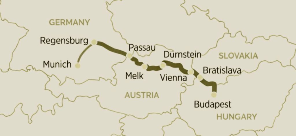 Partindo da Alemanha, seguimos o curso das águas até os mosteiros barrocos da Áustria, com uma pausa na medieval Bratislava, antes de nos deixarmos envolver pelo esplendor art nouveau de Budapeste.